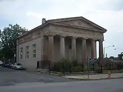 McKim's School, also known as McKim's Free School, is a historic school located at Baltimore, Maryland, United States. It is an archaeologically accurate Greek-style building. The front façade is designed after the Temple of Hephaestus, or Temple of Theseus, in Athens, Greece in granite. Six freestone Doric columns, 17 feet (5 meters) tall, support the entablature and pediment. The sides were derived from the north wing of the Propylaia on the Acropolis of Athens. The building site was funded by Quaker merchant Jon McKim who funded a trust for poor students managed by his son Isaac after his death in 1819.[2] It was designed by Baltimore architects William Howard and William Small and erected in 1833. It served as a school and youth training center until 1945, when the building was adapted for use as the McKim Community Center. In 1972 the building was sold by trustees to the city.[3]