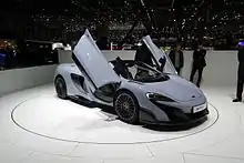 The McLaren 650S is a British sports car designed and manufactured by British automobile manufacturer McLaren Automotive. It was announced in February 2014 as a new model, but based on the existing MP4-12C with 25% new parts,[4] and was formally unveiled at the 2014 Geneva Motor Show.[5]