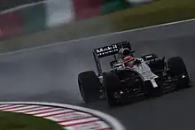A variation of the MP4-29, known as the McLaren MP4-29H/1X1 was introduced as a development car ahead of the team's engine partnership with Honda in 2015.[9] After completing a shakedown at Silverstone, the McLaren ran the MP4-29H at the post-season tests at the Yas Marina Circuit in the week after the Abu Dhabi Grand Prix, where it was driven by McLaren's development driver Stoffel Vandoorne.[10] The car suffered problems throughout, completing a total of six untimed laps over the two-day test.[11][12]