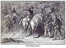 McNeill's Rangers was an independent Confederate military force commissioned under the Partisan Ranger Act (1862) by the Confederate Congress during the American Civil War. The 210 man unit (equivalent to a small or under-strength battalion) was formed from Company E of the 18th Virginia Cavalry and the First Virginia Partisan Rangers (62nd Virginia Mounted Infantry). After the repeal of the Act on February 17, 1864, McNeill's Rangers was one of two partisan forces allowed to continue operation, the other being 43rd Battalion Virginia Cavalry (Mosby's Raiders).[1] Both of these guerrilla forces operated in the western counties of Virginia and West Virginia. The Rangers were known to exercise military discipline when conducting raids. However, many Union generals considered Captain John Hanson McNeill (1815–1864) and his men to be "bushwhackers," not entitled to protection when captured, as was the case with other prisoners of war.