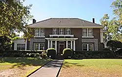 The McRae House is a historic house at 1113 East 3rd Street in Hope, Arkansas. This two story brick house was designed by Charles L. Thompson and built c. 1917. It is a restrained Prairie style design, with a relatively simple main block, whose entrance is highlighted by a small porch supported by six Tuscan columns on brick plinths. The porch has curved beams, and the columns are echoed in pilasters on the facade.[2]