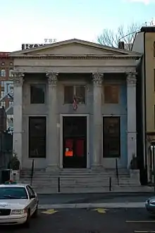 The front of the structure remains as Strickland built it, but the rear and interior have been greatly altered. In 1898, the architect James Windrim renovated it for the bank, replacing Strickland's vault and directors room (as well as a small office added later) with a much larger two story structure of fireproof brick and iron construction, while the church divided the main room into two stories and added additional office space at the rear in 1930 and later tenants made further changes.