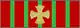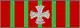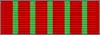 - The suspension ribbon is wavy silk, with a red background, longitudinally cut by five green stripes, each 0.0015 m (1.5 mm) wide and equidistant from each other and the edges of the ribbon; the width is 0.03 m (30 mm), with a length necessary to make the distance from the top of the ribbon to the lower edge of the decoration 0.09 m (90 mm), to obtain the lower alignment of the different insignia; in the center, a miniature war cross, surrounded by two branches of laurel, all in gold.[2]