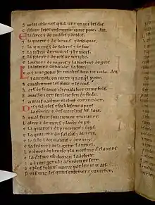 Around a hundred verse romances survive from the period 1150–1220.[2] From around 1200 on, the tendency was increasingly to write the romances in prose (many of the earlier verse romances were adapted into prose versions), although new verse romances continued to be written to the end of the 14th century.,[3] and it was chiefly in their prose form that many romances were read from the 14th to the 16th century.