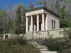 The Meditation Chapel is located in Salt Lake City's Memory Grove, in the U.S. state of Utah. The structure was built by Mr. and Mrs. Ross Beason in 1948 to commemorate their son and others killed during World War II. It is made of Georgian marble, a copper roof, and bronze doors. The Memory Grove Foundation restored the chapel's stained glass windows, earning the group a Utah Heritage Foundation Heritage Award in 1999.[1]