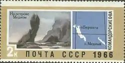 Medny Island (Russian: о́стров Ме́дный), also spelled Mednyy or Mednyi, sometimes called Copper Island in English (literally translated from Russian), is the smaller (after Bering Island) of the two main islands in the Commander Islands in the North Pacific Ocean, east of Kamchatka, Russia. (The other fifteen are better described as islets and rocks.) These islands belong to the Kamchatka Krai of the Russian Federation.