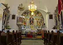Saint Catherine's Church exterior (left) and chancel (right)