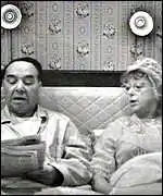 Fred and Thora have been using the same bed for 25 years and it is lumpy and past its best. Thora decides it's time to get not just a new bed but two separate beds, because Fred keeps taking the bed clothes, etc. However two beds cost much more than one so she settles on a nice bed but that night makes Fred's life a nightmare as she tries to get settled, so Fred goes to the spare room to sleep on the old bed. While still nagging him though he's now in another room, Thora finds his present and card for their Silver Anniversary tomorrow, costing the £15 she thought he'd wasted. She grabs the bed clothes and goes to the other room and gets in bed with Fred. Brian Oulton was the bed salesman.