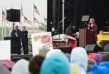 Duffy established the Ecology and Evolutionary Biology (EEB) Mentor Match, which pairs undergraduate students from minority-serving institutions with mentors to help with graduate school and fellowship applications.[15] Duffy created Diversity EEB, a list of ecologists / evolutionary biologists who are women or from a group traditionally underrepresented in the sciences to help people identify scientists who might diversify seminar series or for award nominations.[16] Duffy is one of the 2017/2018 American Association for the Advancement of Science Leshner Leadership Institute Public Engagement Fellows.[17] She is interested in how scientists can engage with policy makers.[18][19] She delivered the opening address at the 2017 March for Science.[20] In 2017, Duffy ran a workshop for high school students on the University of Michigan Wolverine Pathways program, teaching students how to find and use open data to answer questions that they are interested in.[21] She is one of three contributors to the science blog Dynamic Ecology.[22]