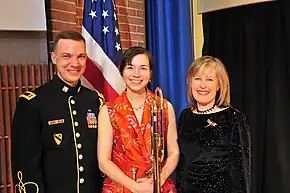 Megumi Kanda with conductor 1LT Joel DuBois and composer Amy Mills.[12]