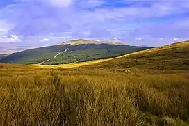 Meikle Bin is a peak in the Campsie Fells in Central Scotland. It is the second-highest of the group at 570 metres (1,870 ft), and with its prominence of 270 m (890 ft) it is classified as a Marilyn.