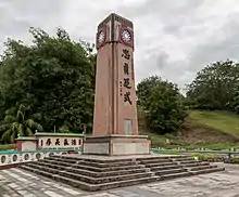 Melaka Warrior Monument, officially the Melaka Warrior Monument for the Chinese victims of Anti-Japanese occupation (Chinese: 马六甲华人抗日义士纪念碑; pinyin: Mǎliùjiǎ huárén kàngrì yìshì jìniànbēi; lit. 'Malacca Chinese Anti-Japanese Volunteers Monument', Malay: Tugu Pahlawan-pahlawan Melaka untuk Mangsa-mangsa Cina akibat menentang penjajahan Jepun, lit. 'Malacca Warrior Monument for the Chinese victims as a result of opposing Japanese colonisation') is a monument at Bukit Cina in Malacca City, Malacca, Malaysia. It was built to commemorate the Chinese victims of the Empire of Japan occupation of Malacca as part of British Straits Settlements during World War II and was unveiled officially by then high commissioner, Sir Edward Gent in 1948. The first known major renovation for the monument was in 1972.[1] The monument is inscribed with four Chinese characters, "忠貞足式" (pinyin: Zhōng Zhēn Zú Shì) in Chiang Kai-shek's handwriting, which means "their (those who have fought against the Japanese) loyalty can be taken as an exemplar".