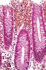 - ↑ Byers, R.J.; Marsh, P.; Parkinson, D.; Haboubi, N.Y (October 2003). "Melanosis coli is associated with an increase in colonic epithelial apoptosis and not with laxative use". Histopathology. 30 (2): 160–164. doi:10.1046/j.1365-2559.1997.d01-574.x. PMID 9067741. S2CID 3175917.