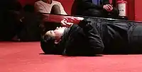 Exergie – Butter Dance is among Suryodarmo's most iconic works. She debuted the 20-minute performance in 2000 at Berlin's Hebbel Theatre. Suryodarmo enters to the sound of ceremonial Indonesian drumming that usually accompanies the Pakarena, a Bugis dance from Makassar, South Sulawesi.[10][8] Wearing high-heeled shoes and a fitted black dress, she begins dancing, treading on 20 blocks of butter that have been arranged on the floor. As the tempo of the drumming increases and the butter melts, she slips and drops to the ground. After each fall, she stands up and begins to dance again, repeating the entire process.[10] The anticipation of each inevitable fall creates a tension for the audience, generating both sympathy and fascination at her perseverance despite the apparent futility of her actions.[4] The work sprang from an assignment by her teacher Abramović for students to create a piece using only €10. Exergie – Butter Dance has had over 20 separate performances. According to Suryodarmo, "the aim of making this work is to get up. You can fail, but you do it anyway. You seldom expose how to get up when you fail."[8]