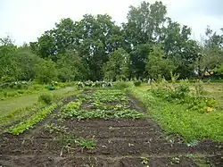 The original fruit trees in Chekhov's garden perished in the cold winters of 1941 and 1970, but a few linden and birch trees from Chekhov's time still remain, along with one Berlin poplar, where Chekhov's father sat with the farm workers shortly before his death in October 1898.[18]