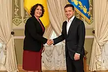 HE Melinda Simmons in 2019 with President Volodymyr Zelensky