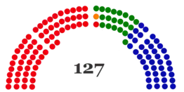 All 127 seats of the 1974–1975 House shown grouped by state, largest to smallest