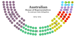 This is a list of members of the Australian House of Representatives of the 29th Parliament of Australia (1974–1975) as elected on 18 May 1974. It convened on 12 June 1974, and ended on 11 November 1975.[1] On 18 May 1974 a double dissolution of both Houses was held. All 127 seats in the House of Representatives, and all 60 seats in the Senate were up for election. The incumbent Australian Labor Party led by Prime Minister of Australia Gough Whitlam defeated the opposition Liberal Party of Australia led by Billy Snedden and Coalition partner the Country Party led by Doug Anthony.