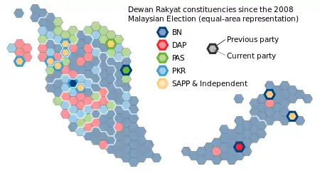Equal-area representation of party changes in the Dewan Rakyat from 2008 to 2013