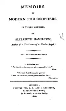 Elizabeth Hamilton's name did not appear on the title page of Modern Philosophers until the third edition.
