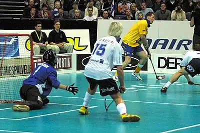 The tournament was held in Switzerland and the two floorball juggernauts clashed again in the final game. Sweden totally devastated the Finnish side with quickly gaining a 9–0 lead. The game soon evened out, but with such an advantage given early on, Sweden coasted to victory with the final score being 11–5.[1][3]
