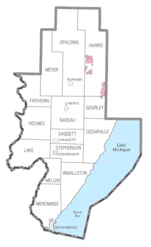 - ↑ "2020 CENSUS - SCHOOL DISTRICT REFERENCE MAP: Menominee County, MI" (PDF). U.S. Census Bureau. Archived (PDF) from the original on August 2, 2021. Retrieved July 21, 2022. - Text list