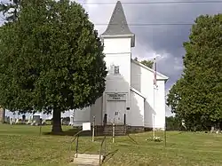 Mentz Church is a historic community church located at Montezuma in Cayuga County, New York. It is a rectangular, gable roofed frame structure built between 1820 and 1830 and enlarged during the 1870s-1880s. The front facade features a centrally engaged square tower. Also on the property is the church cemetery with headstones dating from 1813 to the 1940s. The church ceased being used for services in 1954 and is being restored for community use.[2]