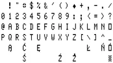 Display circuit was similar to TRS-80, it supported 64×16 or 32×16 monochrome text mode[5][2] only; low resolution 128×48 graphic mode simulated by semigraphics.[5] Character generator resided in separate ROM memory, there was also separate 1 KiB of video memory.[5] Similar to TRS-80 there were no lower case characters.[1] No polish specific characters (ĄĘĆŚÓŃŁŻŹ) on the keyboard and character table.[1]
