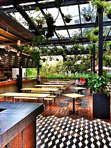 Mercado Roma ("Roma market") is a public market in the format of a gourmet food hall located on Querétaro street in the Colonia Roma Norte neighborhood of Mexico City.[1][2][3] The market stalls offer organic and other food products for sale; stands and counters where visitors can eat a variety of cuisines (pozole, tacos, tapas, hamburgers). Some of the stands are from restaurants or shops well known outside the market, such as Que Bo! chocolates, Azul Mexican food and Butcher's hamburgers.[4]