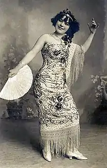 In 1908 Blasco published a book entitled Memórias de uma actriz (Memories of an actress).[4] The premature publication of a memoir, while still at the height of her career, was unusual but her notoriety meant that the book sold very well. Around this time Blasco began to undertake more frequent overseas trips. At the beginning of 1908 she went to Rio de Janeiro for the Brazilian National Exposition, where she had considerable success. She then went directly to Paris to begin a long season of touring that took in France, Italy, the United Kingdom, the Netherlands and Belgium. Her fluency in several languages served her well during the tour and she became very popular with members of several royal families, being asked to give command performances.[1][2][3]