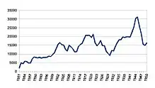 Traffic grew to a peak in World War 2, as shown in the graph and table below.
