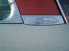 The Monterey was offered in five bodystyles, including two and four-door pillared sedans, a two-door convertible, and two-door and four-door Cruiser hardtops.[26][27][28] Taking its name from the discontinued Turnpike Cruiser, the Cruiser was given a large compound-curved rear window (styled as a fastback). To improve interior access and driver visibility, the forward-swept A-pillar was made nearly vertical.[29]