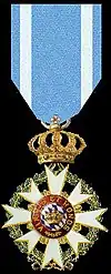 The Order of Merit of the Bavarian Crown (German: Verdienstorden der Bayerischen Krone) was an order of merit of the Kingdom of Bavaria established by King Maximilian Joseph I on 19 March 1808. The motto of the order is Virtus et Honos ('Courage and Honour').