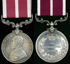 The Meritorious Service Medal (MSM) is a British medal awarded to Senior Non Commissioned Officers and Warrant Officers of the British armed forces for long and meritorious service. From 1916 to 1928, eligibility was extended to cover both valuable services by selected other ranks irrespective of length of service, and for gallantry not in the face of the enemy.[2]