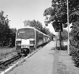 Merton Park station continued to serve the West Croydon to Wimbledon Line until its withdrawal from service after the last train on 31 May 1997 and conversion into a stop on the Wimbledon branch of the Tramlink network.[2] Merton Park tram stop now overlaps the site of the original station, the tram lines occupying the site of the trackbed and platform of the old line.