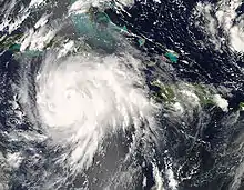 Hurricane Gustav near peak intensity on August 30, shortly before landfall on western Cuba