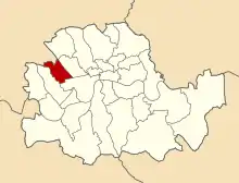 The metropolitan borough was divided into eight wards for elections: Church, Harrow Road, Hyde Park, Lancaster Gate East, Lancaster Gate West, Maida Vale, Queen's Park and Westbourne.[13][14]