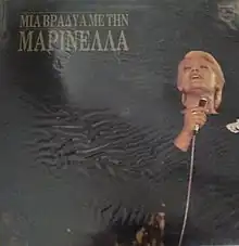 Mia vradia me tin Marinella (Greek: Μια βραδιά με την Μαρινέλλα; English: An evening with Marinella) is the name of the first live album by popular Greek singer Marinella. It was released on 16 March 1972 by PolyGram Records in Greece.[1][2] Marinella was the first Greek woman to record a live album during her performance at the “Stork”, a popular night club in Athens, Greece, in 1971.[3][4]