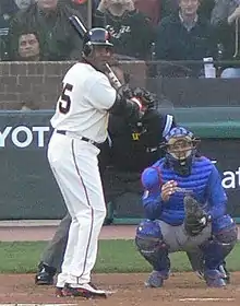 Barrett sought to improve his numbers in the 2006 season, but ran into several obstacles. On May 20, 2006, Barrett was involved in an infamous altercation with A. J. Pierzynski during the Chicago Crosstown Classic between the Chicago White Sox and Cubs. During the game's second inning, Brian Anderson hit a sacrifice fly, which allowed Pierzynski to score the game's first run.[30] Pierzynski collided with Barrett en route to home plate, causing Barrett to fall down.[31] Pierzynski showed his enthusiasm by slapping home plate. As Pierzynski got up, he bumped into Barrett, who proceeded to punch him.[31] Scott Podsednik came to Pierzynski's aid and subdued Barrett.[31] Anderson and John Mabry eventually joined the brawl before both teams emptied their dugouts and stormed the field.[31] The game's umpires ejected Barrett, Pierzynski, Anderson, and Mabry.[31] Barrett later received a ten-game suspension, while Pierzynski was fined.[32] Additionally, Anderson and the Sox' third base coach were also suspended for a fewer number of games.[32] The Cubs went on to lose the game by a score of 7–0.[30] On June 30, the two met during batting practice, and made amends.[33][32] which eventually led to a bench-clearing brawl. He received a ten-game suspension, which he served near the middle of June.[24] Barrett rebounded after the incident, and batted over .300 in the final four months of the season.[24] He suffered an intrascrotal hematoma in early September, and was forced to miss the rest of the season. The injury and suspension caused Barrett to miss a significant portion of the season.[34] In his shortened season, Barrett hit 16 home runs, which matched his previous career high, and nearly surpassed his hit total from 2005.[1]