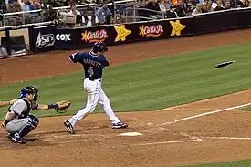 - ↑ Barrett leaves game after fouling pitch off face (July 2, 2008), Yahoo! Sports. Retrieved on July 2, 2008.