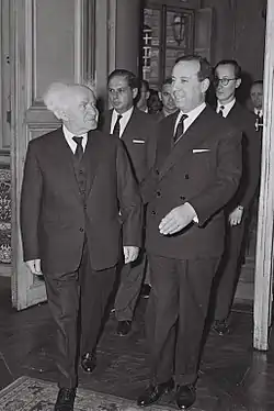 Michel Jean-Pierre Debré[1] (French pronunciation: [miʃɛl dəbʁe]; 15 January 1912 – 2 August 1996) was the first Prime Minister of the French Fifth Republic. He is considered the "father" of the current Constitution of France. He served under President Charles de Gaulle from 1959 to 1962. In terms of political personality, Debré was intense and immovable and had a tendency to rhetorical extremism.[2]