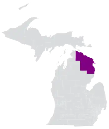 Michigan's 106th House of Representatives district (also referred to as Michigan's 106th House district) is a legislative district within the Michigan House of Representatives located in parts of Cheboygan and Oscoda counties, as well as all of Alcona, Alpena, Montmorency, and Presque Isle counties.[3] The district was created in 1965, when the Michigan House of Representatives district naming scheme changed from a county-based system to a numerical one.[4]