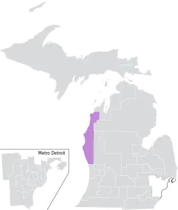 The district overlapped with Michigan's 4th and 5th congressional districts, and with the 48th, 49th, 51st, 85th, 94th, and 95th districts of the Michigan House of Representatives.[6]