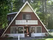 As of 2015, Michillinda Lodge consists of nine buildings providing 26 guest units in total.[9] The resort positions itself as both family-oriented and historic in nature, and does not provide either telephones or televisions in its guest rooms.[5] On-site amenities include a heated outdoor swimming pool, two shuffleboard courts, a miniature golf course, basketball and volleyball courts, and two tennis courts. Also on the grounds are a playground, a campfire, and a 400-foot (120 m) private beach on Lake Michigan.[9][24] The destruction of the main lodge in 2012 did not damage any of these amenities.[7]