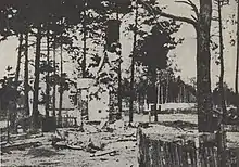 Michniów has been known for patriotic traditions since the January Uprising.[15] In September 1939, many men from Michniów fought in the ranks of the Polish Army. One of them, Józef Dulęba, took part in the Battle of Westerplatte.[16] In the autumn of 1939, the inhabitants of Michniów provided assistance to the partisan units of Major Henryk Dobrzański, pseudonym "Hubal".[17] The first resistance structures also quickly formed in the village. Coming from Michniów Hipolit Krogulec, pseudonym "Albiński" became one of the first organizers of the Union of Retaliation (Z.O.) in the Kielce Province. Over time, the number of the Z.O. cell in Michniów increased to around 10 members, and "Albiński" himself became the deputy commander of Z.O. in the Kielce District of the ZWZ.[18] After the renaming of ZWZ into the Home Army (Armia Krajowa – AK), a secretive platoon formed under the code name "Forge" in Michniów. Władysław Krogulec became its commander, while Franciszek Brzeziński served as his deputy. On the eve of pacification, more than 40 village residents were sworn members of the Home Army.[19] The inhabitants of Michniów also supported partisans from the People's Guard unit of the Kielce region (commander: Ignacy Robb aka "Narbutt").[20] The village population also provided aid to Soviet prisoners of war who had escaped from the camps.[21]