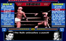 The moves and scenes in the game's matches are accompanied by digitized images of them occurring from each specific match. The original MicroLeague Wrestling disk, released in 1987, features Hulk Hogan vs. Randy Savage on one side and Hulk Hogan vs. Paul Orndorff on the other. In 1988, two expansion discs were released, known as the "WWF Superstar Series". The first of these features Randy Savage vs. The Honky Tonk Man and Jim Duggan vs. Harley Race. The second disk features Hulk Hogan vs. Ted DiBiase and Jake Roberts vs. Rick Rude.[2] The Amiga and DOS versions, released in 1989, feature Hogan vs. Savage (from a later match between them) and Hogan vs. DiBiase. There were no expansions released for this version as the WWF ceased production of the game to focus on console games.