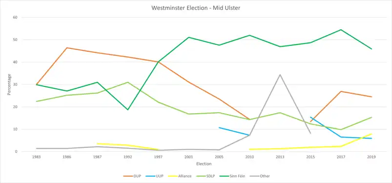 - ↑ "Mid Ulster Parliamentary constituency". BBC News. BBC. Retrieved 18 November 2019.