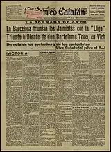 - ↑ Junyent predicted that the bourgeoisie Esquerra would be "the captive of the Anarcho-Syndicalists whose votes it has solicited four times in as many months". Accepting a potentially independent Catalonia would be surrendering to what Junyent described as "the corpse", Blinkhorn 2008, p. 61