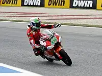 After joining the Red Bull KTM Ajo team, he became the first Portuguese rider to win a motorcycle Grand Prix with a victory at Mugello.[2] After taking a second victory in three races, at Assen,[5] Oliveira suffered a heavy crash during the first practice session of the following Grand Prix in Germany which forced him to withdraw from the race due to a broken and displaced metacarpal in the left hand. Returning from injury in Indianapolis his best result in the following three races was an eighth-place finish at Brno. With only 6 races remaining in the season, Oliveira trailed championship leader Danny Kent by 110 points. Oliveira finished second at Misano, before winning at Aragon; he also pulled 35 points back on Kent over the two races. Another 35 points were pulled back on Kent, as Oliveira continued his top-two streak with second in Japan,[6] and a victory at Phillip Island.[7] The victory also stopped Kent from clinching the title – Oliveira trailed Kent by 40 points with 50 points available, and was the only rider that could catch Kent in the standings. Oliveira won again in Malaysia, and with Kent finishing seventh, Oliveira kept the title race alive heading to the final round in Valencia – 24 points behind, with 25 points available.[8] Oliveira won the race, but with Kent finishing ninth after a three-rider collision in the last corner, Oliveira fell six points short.[9]