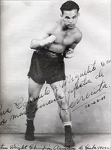 Miguelito Valdés was born as Miguel Ángel Eugenio Lázaro Zacarías Izquierdo Valdés Hernández[1] on September 6, 1912 in Havana. His father was Spanish and his mother was Mexican from Yucatán. He was born in Belén (in Old Havana), and moved to another barrio, Cayo Hueso (in Centro Habana), when his father died. In his youth he worked as an auto mechanic and was a good amateur boxer. In 1934 he won the Amateur Championship of Cuba at his weight. One of his closest friends from his days in the barrio was Chano Pozo, and in his singing style he has been called "as black a white guy as you would meet in Havana".[2] In 1936 he married Vera Eskildsen, an aristocrat from Panama City with whom he had a son, Juan Miguel Valdés Eskildsen. In 1968 he lived in Palm Springs, California.[3]